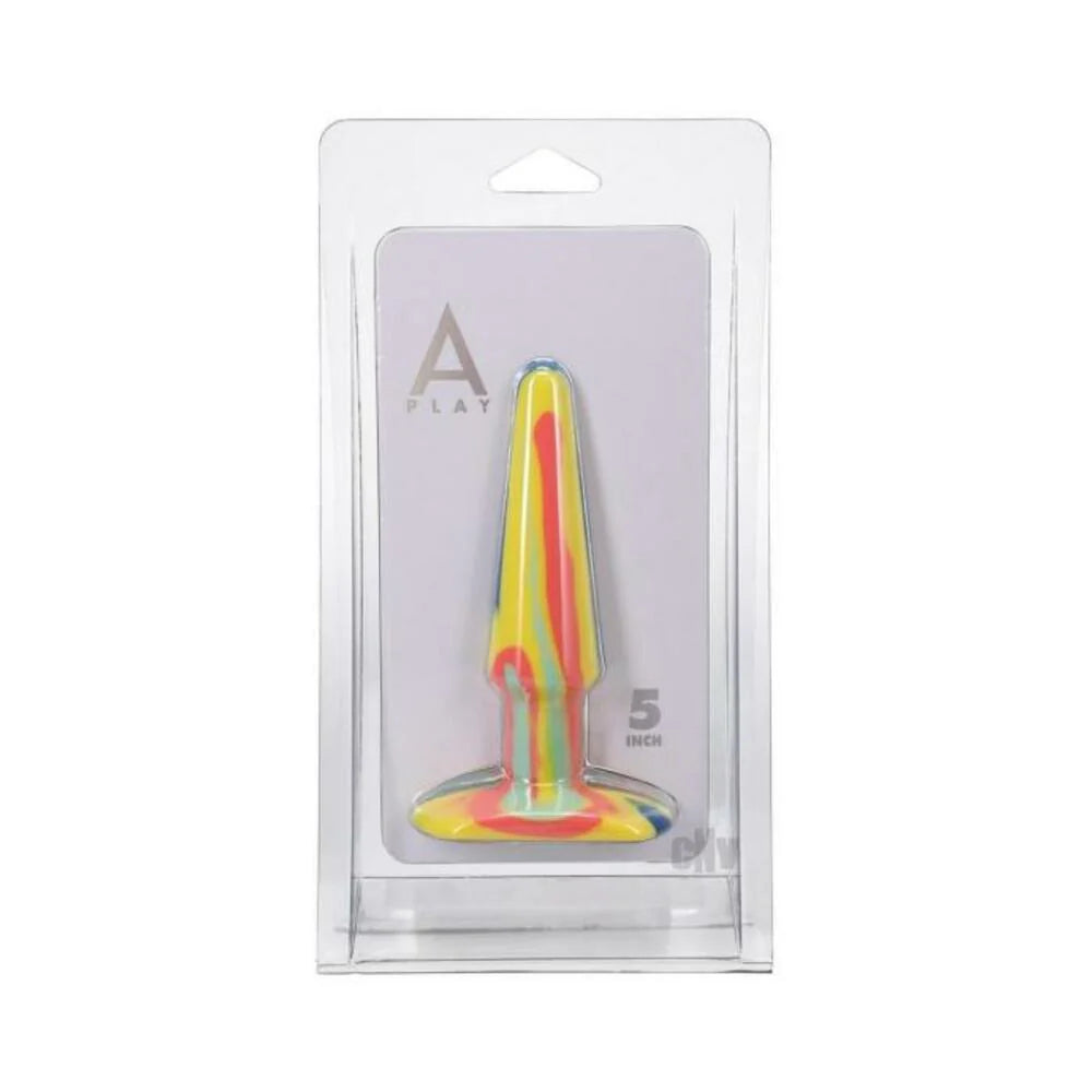 The A-Play Groovy is a soft multi-colored anal plug made of health-grade silicone. Its tapered tip and wide base make for safe, comfortable play, and its firm-yet-flexible feel allows for a little wiggle. Each plug is unique and has its own variation of the color pattern.Features Made from Health-Grade Hygienic Silicone Tapered Tip for Easy Insertion Wide Base for Safe Play Warms to Body Temperature Firm Yet Flexible Easy to Clean; Top Rack Dishwasher-Safe Hypoallergenic, Nonporous, and Odorless Phthalate-Free, Body-Safe Dimensions Total Length: 4.25 in. (10.8 cm) Insertable Length: 3.75 in. (9.5 cm) Width/Diameter: 0.75 in. (1.9 cm) Circumference: 3 in. (7.6 cm)