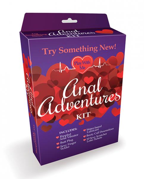 Our Anal Adventure Kit has everything you need to take those first steps into exploring anal sex with your partner. The kit contains both toys and ideas on how to get started. Included in this box is a rippled anal vibrator, a butt plug, a sexy finger tickler, water-based lube, anal numbing gel, and 10 cards with ideas to help get you get creative on the backside. Enjoy this new and exciting exploration of each other.