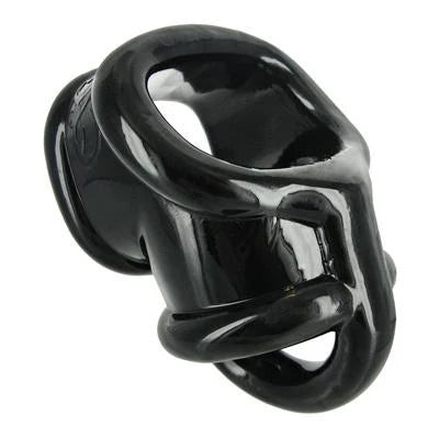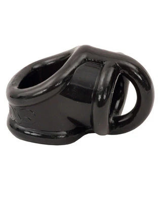 Divide and conquer with this devious piece. Insert the penis through the main compartment, then place the testicles through the separator: this T-style divider keeps everything snugly in its place. Made of flexible TPR, this erection enhancer stretches to fit over the user and keep them just subdued enough to keep things interesting. Measurements Erection Ring has 1.39 inches interior width (unstretched). Material Thermoplastic Rubber TPR. Color Black.