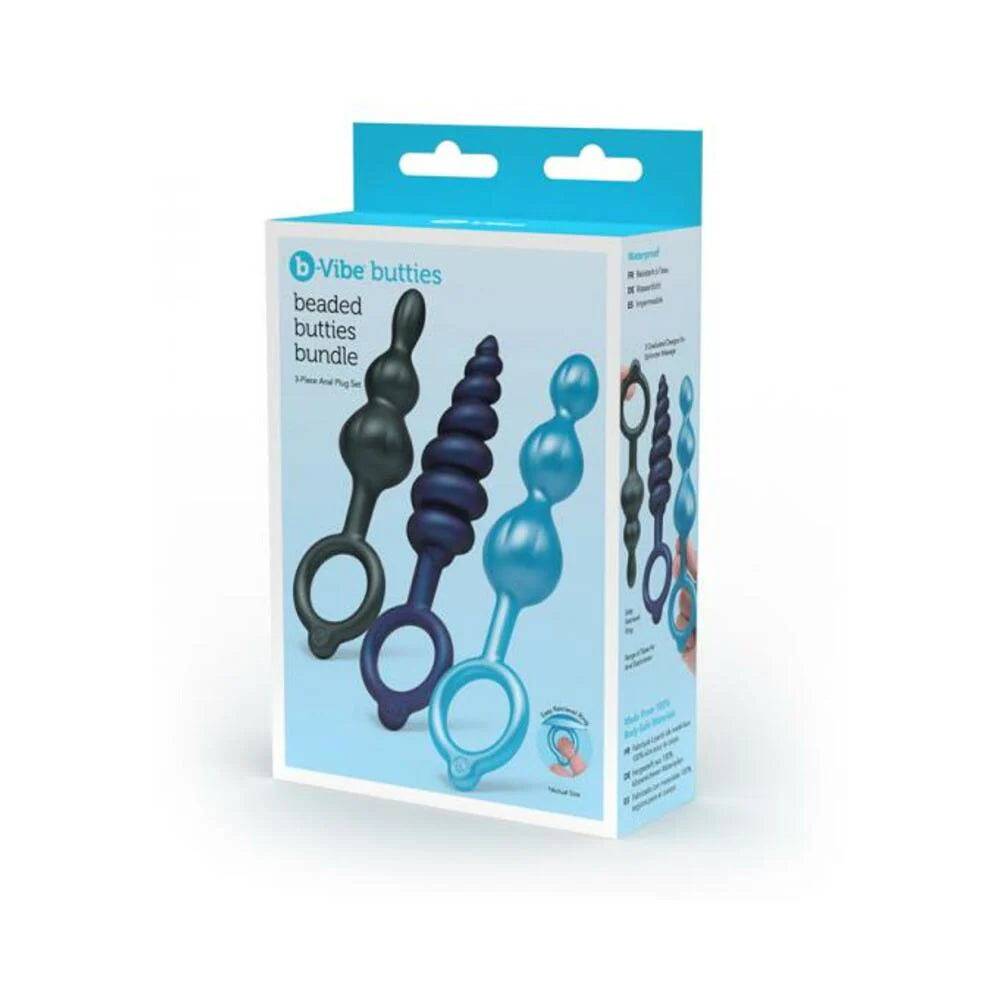 b-Vibe's Butties collection features an array of 100% body-safe silicone plugs that are perfect for exploring posterior pleasure. Compatible with all water-based lubricants, this silky smooth collection fulfils your keister's cravings with designs that massage your sphincter, pique your prostate (if you have one), and provide that coveted feeling of fullness for a well-rounded anal experience. Each toy in the collection features a flared base and finger-sized ring for easy removal and retrieval. Meet your new friends with benefits from the b-Vibe Butties collection.Size up your stimulation with b-Vibe's Beaded Butties Bundle. This set of three graduated plugs lets you pop into pleasure with gradually increasing beads that massage your sphincter with each thrust. The three sizes of plugs let you size up or down for anal training, and the texture variety provides three different thrilling styles of stimulation. All three plugs are 100% waterproof for use in the bath or shower and allow for easy cleaning.