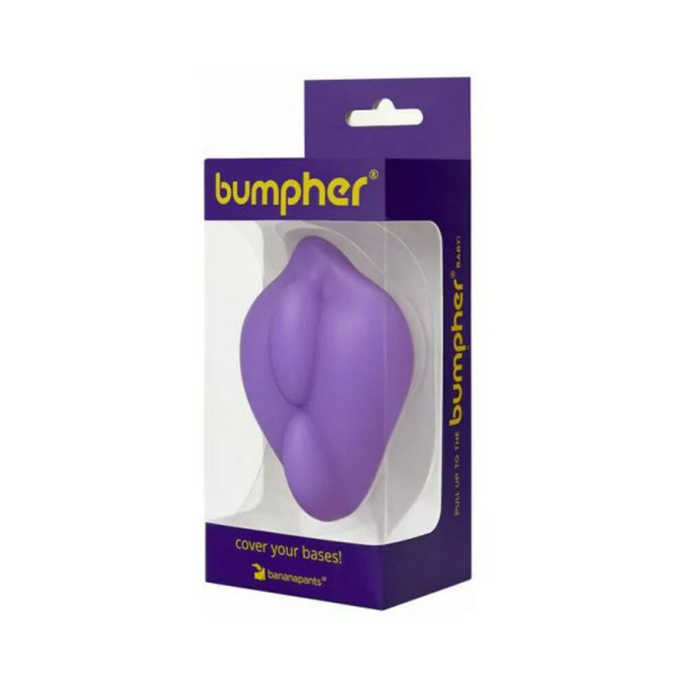 The patented bumpher is a dildo base stimulation cushion designed to stimulate the wearer during strap-on play. Simply attach the bumpher over the base of your favorite dildo as it stretches to fit bases up to 3.25 inches. Made of silky-soft, smooth silicone, the bumpher offers a semi-firm rub and some extra cushion for the pushin'.Sensually contoured, the bumpher offers a supple, double-bump design for a super sexy grind. Both pleasure and padding, the bumpher adds connection and stimulation to your ride! Soft where you need it, firm where you want it! Cover your base with the bumpher and elevate your pleasure! 4"H x 2.75"W Fits most dildo bases up to 3.25 inches (8.25 cm) and is compatible with open o-ring and underwear harnesses. Always clean before and after use with soap and warm water. Also boilable for 3 minutes with care. Use only water based lube. Body safe silicone. Phthalate free-hypoallergenic.
