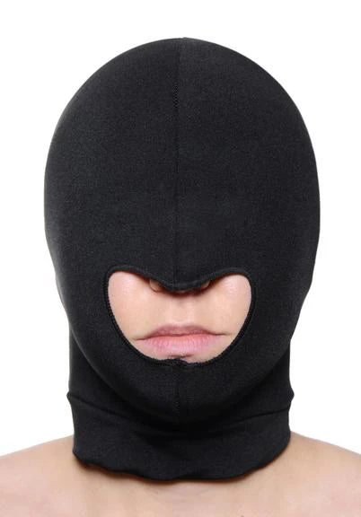 This devious disguise is designed to be comfortable, stretching completely over the head and obscuring their view. This lightweight hood features an opening for the mouth and will not hamper breathing, but will limit eyesight. The exposed mouth leaves open all kinds of naughty possibilities. Perfect for some calculated roleplaying, or insertion of a mouth gag or other exciting accessory. It is your domain. Measurements one size fits most. Material Spandex. Color Black.
