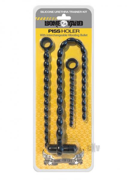 The Piss Holer is a sounding kit for the beginner to the advanced enthusiast. The kit includes three silicone sounding rods in graduated lengths and thicknesses. The beaded flexible sounds bend with the body, to make it easier to go deeper and hit your prostate. The beaded design allows lubricant to stay between the beads as you insert them, to make it easier to slide in without re-lubricating so often. The kit also includes an interchangeable 7-speed vibrating bullet, with 7 different strengths and patterns that travel down the entire length of each sound. When inserted through the circular opening on the top of each sound, the bullet also acts as a handle to easily guide each sound while inserting for that unique prostate sensation that you crave. Made of premium, medical grade silicone. These urethral sounds are easy to sterilize and body safe for an all new sounding experience. Soft Touch Silicone 3 Graduated Sizes Intense Stimulation Super Flexible Stimulates Prostate Small Length: 5.5 inch (14 cm) Largest Width: 0.35 inch (9 mm) Medium Length: 8.7 inch (22 cm) Largest Width: 0.39 inch (10 cm) Large Length: 16.1 inch (41 cm) Largest Diameter: 0.47 inch (12 mm) This product is safe with all lubricants, completely hypoallergenic, non-irritating and compatible with sensitive skin.