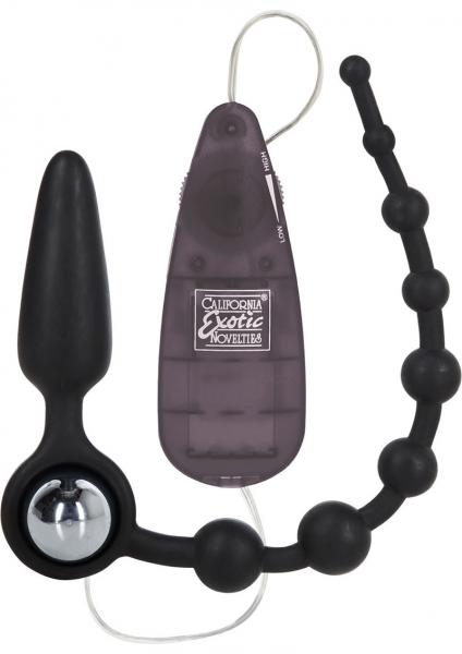 - 3.25 x 1/8.25 cm x 2.5 cm (probe)- 8.25 x .75/21 cm x 2 cm (beads)- 2 x 1/5 cm x 2.5 cm (stimulator)- Premium Silicone probes with removable stimulator- Powerful multi-speed vibrations- Stimulator and probe may be used together or separately- Easy to use controller- 2 AAA