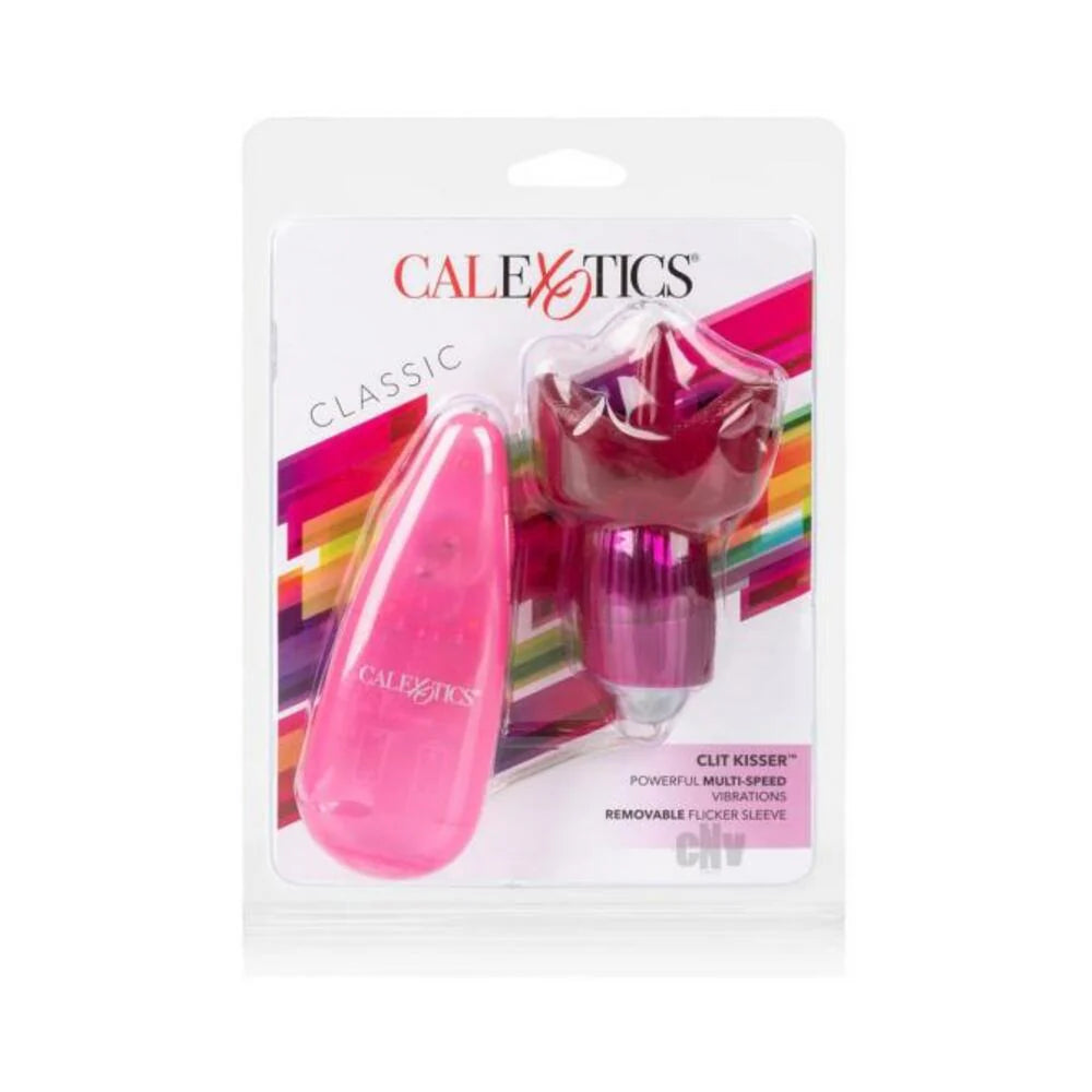The Clit Kisser flickering bullet packs intense multi-speed vibrations into a teasing tongue-shaped sleeve. The oral-like stimulator has an easy-touch speed dial and egg-shaped bullet vibe to deliver thrilling sensation. Snuggle close to this teasing tongue massager and turn up the heat in the bedroom. Expect more foreplay as a couple or indulge in a playful solo session. The powerful vibration bullet can be used independently from the tickler attachment for pinpoint pleasure. Dimensions: Arouser: 3.5 x 2.25 in. Stimulator: 2 x 1 in. Package: 1.75 x 6 x 8 in.
