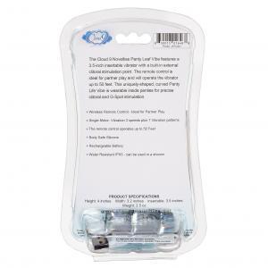 Cloud 9 Health and Wellness Wireless Remote Control Panty Leaf Vibrator Plum. WTC941 Wireless Insertable Panty Leaf Vibe with Remote Control Teal. The Cloud 9 Novelties Panty Leaf Vibe features a 3.5 inches insertable vibrator with a built in external clitoral stimulation point. The remote control is ideal for partner play and will operate the vibrator up to 50 feet. This uniquely shaped, curved Panty Life Vibe is wearable inside panties for precise clitoral and G-Spot stimulation. Features: wireless remote control. Ideal for partner play. Single motor: vibration 3 speeds plus 7 vibration patterns. The remote control operates up to 50 Feet. Body safe Silicone. Rechargeable Battery. Water Resistant IPX5 can be used in a shower. Please note panty not included. MAPS price 59.95.