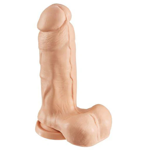 Cloud 9 Working Man 7 inches Light Skin Tone Beige Dildo with Balls Your Rockstar. Dong specifications: 8.5 inches long, 6.25 inches insertable, 1.57 inches diameter, 5 inches circumference, 0.525 pound. 7 inches Dong with Balls Light Skin Tone Beige. Your Rockstar is a thick, 7 inches dong featuring a realistic head and veined shaft, full balls and a suction cup base. Use alone or with a partner, the suction cup base can be used on any flat surface, or inserted in a harness. Odor free, this dong is made with body safe, phthalate free, non-toxic PVC. For use with water based lubricants only. Manufactured for Cloud 9 Novelties. Made in China Meets EN71-3 Standards. Cloud 9 Novelties, 9250 Commerce Hwy, Pennsauken, NJ 08110. Cloud 9 products are sold and intended for use strictly as adult novelty toys for entertainment. They are not intended for medical use and have not been clinically tested. No medical claims are warranted or implied by the use of these products. Size 8.5 inches, 6.25 inches insertion length, 1.57 inches in diameter and 5 inches circumference. Categories: Dildos, Dongs, Realistic Dildo Medium, Dildos and Dongs Realistic. 2022.