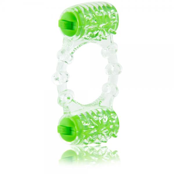 The Two-O Double Pleasure Vibrating Ring features two super powered, super bright mini motors attached to a stretchy and comfortable pleasure ring for better, more satisfying sex. The top motor stimulates her clitoris while the bottom motor buzzes strong for mutual pleasure, giving couples something to scream about together! Now available as a convenient ColorPoP Quickie, couples can enjoy vibrant vibration at home or on the go with a disposable design they can take anywhere! Features: two long lasting motors for his and her pleasure. Intense vibrating ring with super stretchy band. Pleasure ticklers for increased clitoral stimulation. Pleasure knobs around the ring boost his experience. Two easy on/off switches. Disposable. 30+ minutes battery life. One size fits most.• SEBS silicone• Latex- and phthalate-free• Water Resistant
