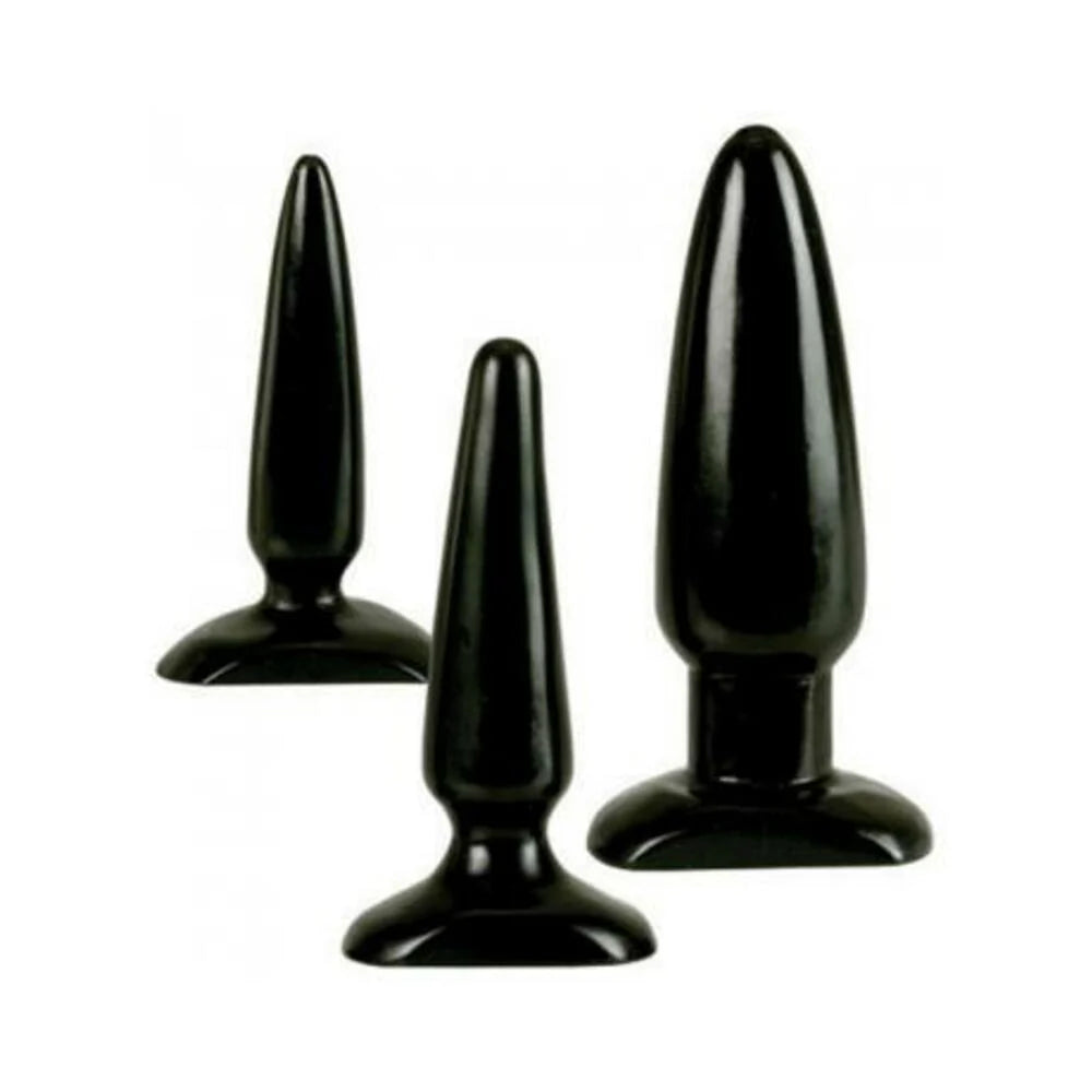 The Colt Anal Trainer Kit entails three firm, pliable, and tapered butt plugs, which range in size from small plug measures 4 inches by 1 inch, medium plug measures 5 inches by 1.25 inches and large plug measures 6 inches by 1.5 inches. These butt plugs are the perfect trainer, providing incremental stages from small to medium to large. Let the training begin!