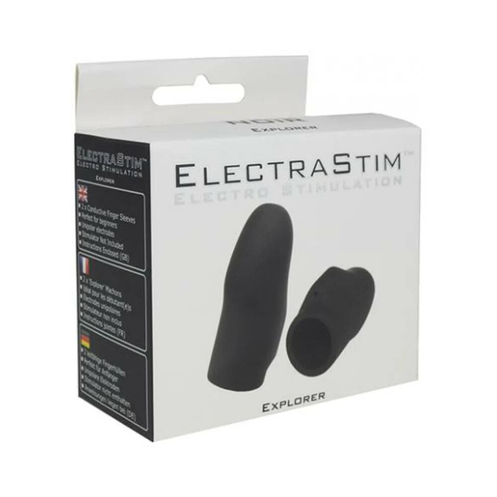 Ideally suited to clitoral stimulation and other surface play, Explorer provides a smooth and controllable level of sensation that encourages exploration of the different erogenous zones. When paired with the KIX Introductory Stimulator in particular, users are able to experience a subtle type of electro-stimulation that showcases the more sensual side of e-stim. Made from platinum cured silicone (100% phthalate-free), the conductive sleeves can be worn as a pair or combined with another unipolar toy such as a pad, cock ring or urethral sound for a range of different sensations. For the best sensation, we recommend using some Conductive Gel (or high quality water-based lubricant) on the skin to ensure the best possible contact. Compatible with any ElectraStim stimulator, the inside of Explorer is insulated so that the wearer won't receive any stimulation through their fingers during play. Material : Platinum cured Silicone. Dimensions: Length of each finger sleeve - 2.17 inches Width of each finger sleeve - 1.18 inches. One Year Manufacturer Warranty.