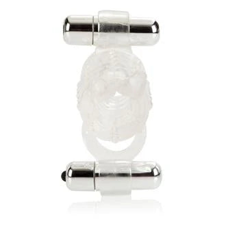 Thicker & bigger is better! Versatile, stretchy, gently ribbed enhancer adds girth and support for him Pleasure nubbies and dual ticklers add incredible stimulation for her 2 powerful removable vibrating bullets with push button control Soft TPE (enhancer) ABS with silver plating (bullets) Batteries included (6 watch, 12 included) 4.25”x 4”/ 11 cm x 10 cm (enhancer) 2.25”x .5”/ 6 cm x 1 cm (bullet) Inner diameter is 1in, but is stretchy.