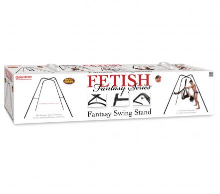Turn any room in your home into a bondage playground with the incredible Fantasy Swing Stand. Don't worry about drilling holes in the ceiling ever again–the free-standing Fantasy Swing Stand holds up to 400 lbs. and works with any of our single-support Fetish Fantasy Fantasy Swings. The heavy-duty tubular steel frame provides plenty of stability and freedom of movement, allowing you to explore new positions you never thought were possible and swing your way into ecstasy. The wide-standing frame assembles in less than 10 minutes with the provided assembly tool. No additional tools are required. The sturdy frame features built-in "Bondage Loops", allowing you to connect a variety of your favorite Fetish Fantasy bondage restraints, cuffs and ties to create exciting new bondage scenarios. You can instantly transform your ordinary sex swing into an amazing "Bondage Swing" by utilizing these built-in steel loops--the possibilities for pleasure are endless! The frame also provides extra support for trying new positions in the swing. Both partners can use the heavy-duty overhead bars and crossbars for added support, leverage, and to help maintain balance in the swing. Without a swing attached, the stand can serve as a bondage brace to hold your subject in captivity. When your done with the stand, the component parts break down easily in less than 10 minutes and can be stored or transported with ease. All necessary assembly hardware is included.