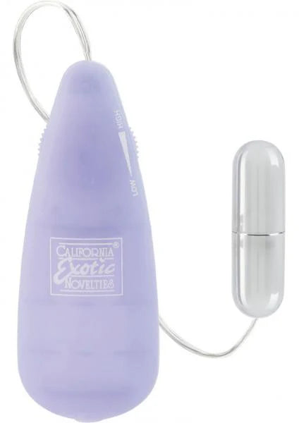 First Time velvety soft pleasure products and playful fetish gear designed for first time or experienced users. Make it a memorable experience with the First Time Collection. First Time Satin Teaser Bullet Vibrator Pink measures 2.25 inches long by 1 inch. Attached power supply. Power packed. Ultra thin controller. Multiple speed vibrations. Silky smooth Satin Finish. Safe and pure for body and pleasure. Made using phthalate free, non-toxic materials: Polypropylene PP controller, ABS plastic with silver plating stimulator. Vibrating sex toy requires 2 AAA Batteries, not included. Do not leave batteries in the vibrator between uses. A water based lubricant is recommended. Category: For Women, Bullets, Beads & Balls, Bullets. First Time Satin Teaser Purple is a registered trademark for California Exotic Novelties. Sex Toys and Sexual Wellness.