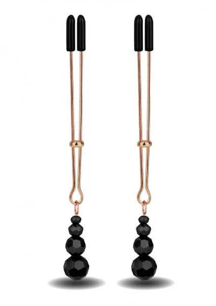 Enhance any intimate experience with these gorgeous beaded nipple clamps. Their adjustable design allows you to apply the perfect squeeze to any size nipples. Adorned with beautiful beads that sensually dangle to tickle the skin, these nipple clamps are the perfect mix of pleasure and pain.