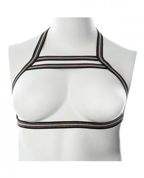 Shine your brightest and show off your shape in our metallic stretch body harness. Be wrapped in our body hugging design, perfect for layering over other garments or wearing as is. Created to fit all bodies and gender identities. Designed as a fashion garment only. Composition: Elastic. 40% Polyester. 40% Rubber. 20% Lurex. Unisex, form fitting ultra stretchy. Gentle hand wash, cold water only. Size: Chest 35-59". Waist: 32-57".