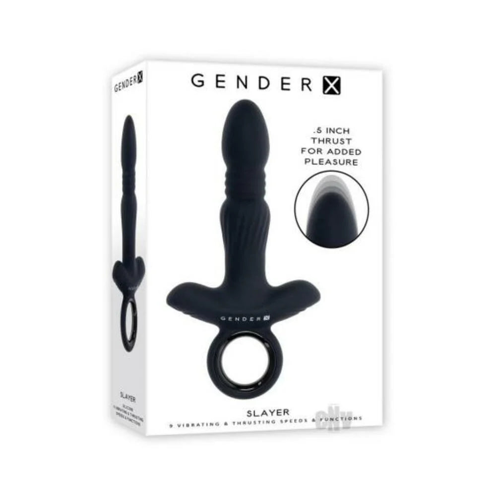 This large robust thrusting vibrator has a smooth egg-shaped tapered tip that narrows to its thrusting accordion neck before swelling out again to a textured lower shaft. The wide base and ringed finger grip make navigation handy and agile. 9 vibrating and thrusting speeds and patterns, 0.5" thrust Made from phthalate and latex free silicone and ABS Height: 7.86", Depth: 4.03", Width: 1.95" Insertable length 5", insertable diameter 1.31" Waterproof and submersible USB magnetic rechargeable, USB cable included