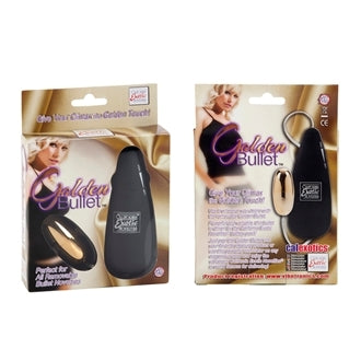 Give your climax the Golden touch! Use it wherever you desire with the removable Golden Bullet. Put in in your favorite pleasure device or use on your favorite erogenous zone and enjoy the vibrations only Swedish Erotica can deliver. Customize your erotic toys or excite yourself with the versatile Golden Bullet and its powerful battery pack. Vibrator warning this bullet is highly explosive. You'll be amazed at the power contained within the compact bullet vibrator. It may be teeny, tiny, but this versatile personal massager provides sexual stimulation that's guaranteed to get you off. Use it alone or with removable bullet adult novelties. Attached remote holds batteries and controls speed. Powerful amazingly quiet discreet mini bullet with multiple speed power pack. Vibrating sex toy requires 2 AAA batteries, not included. Do not leave batteries in the vibrator between uses. Safe and pure for body and pleasure. Made using phthalate free, non-toxic materials ABS plastic power controller. ABS plastic with gold plating. Bullet vibrator measures 2.2 inches long by 1 inch wide. Bulk weight: 2.2 ounces. Always clean before and after use