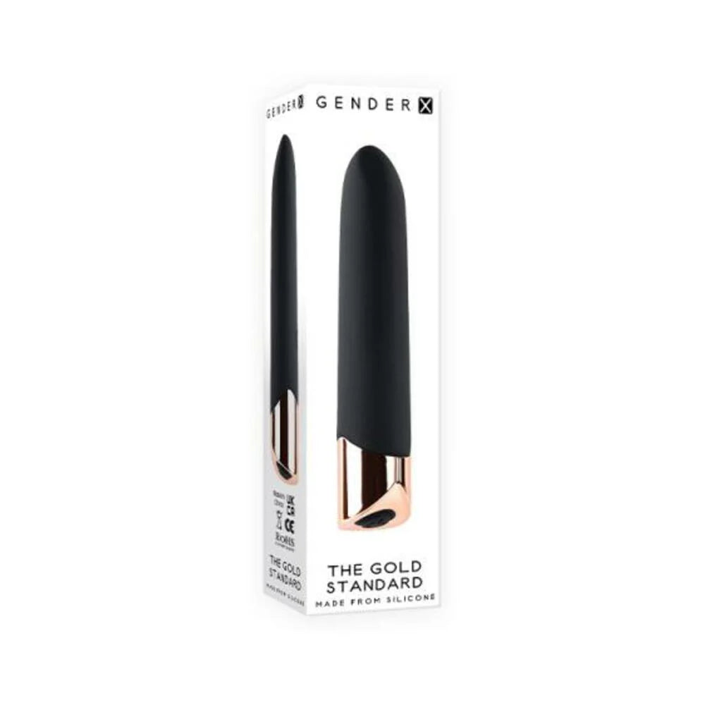 The Gold Standard This powerful 10-speed silicone bullet features a slanted lipstick-shaped tip that`s perfect for targeted stimulation, able to fit into crevasses or lay flush and flat. The straight shaft finishes with a stylish rose gold base housing a 1-button easy-to-use control panel that lights up when in use. Bring this nightstand classic into the bath or shower with you as it`s completely water submersible - and recharges conveniently via USB. Powerful rechargeable silicone bullet Flat lipstick-like slanted tip Great for targeted stimulation 10 vibrating speeds andamp; functions Easy to use 1-button control LED lights up button when in use Made from creamy smooth silicone Base made from rose gold-finished ABS plastic Height: 3.93, Depth: 0.84, Width: 0.84 Insertable length 3 Weight: Under .5 lb Rechargeable, USB cable included Phthalate andamp; latex free Waterproof andamp; submersible
