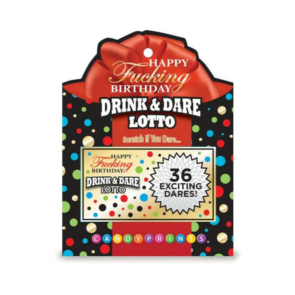 Scratch if you dare... Object: Accumulate points by successfully completing the dares. How to Play: Have the birthday person distribute one lotto ticket to each partygoer. Partygoers may then reveal their hidden task. Each dare is worth a predefined point value. Points are only awarded upon successful completion of the dare. Once a dare is complete, the player may request another lotto ticket from the birthday person. Should a player fail to complete the dare, the lotto ticket may be returned to the birthday person so that it may be distributed to another player. The player who accumulates the most points wins the game. Contents: 36 Scratch-Off Lotto Tickets