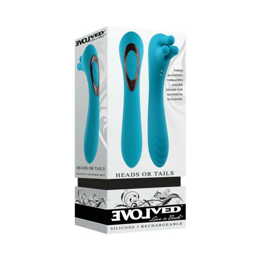Heads or Tails Heads you win, tails youandhellip;win! This lucky toy has two unique experiences to double your pleasure. One end is a powerful arched bulbous 9-speed vibrator, and the other a delicious trio of thick massaging fingers that rotate and vibrate in 9 speeds. The ergonomic handle rests comfortably in your hand, making it easy to reach the 2-button control panel that operates the motors independently or together. Completely water submersible, rechargeable via USB and easy to clean. andlsquo;Heads or tailsandrsquo; vibrator with 2 unique ends A 9-speed 3-finger head - 2 twirling, 1 vibrating 9 vibration speeds andamp; patterns in long andlsquo;tailandrsquo; shaft Textured shaft for added stimulation Height: 7.59, Depth: 2.79, Width: 1.58 Insertable length 4.18, Insertable diameter 1.47 Weight: Under?.5 lb.2-button control panel at back of handle LED lights up buttons when in use Made from creamy smooth silicone Black chrome-finished ABS plastic detail Waterproof andamp; submersible Phthalate andamp; latex free Magnetic rechargeable, USB cable included