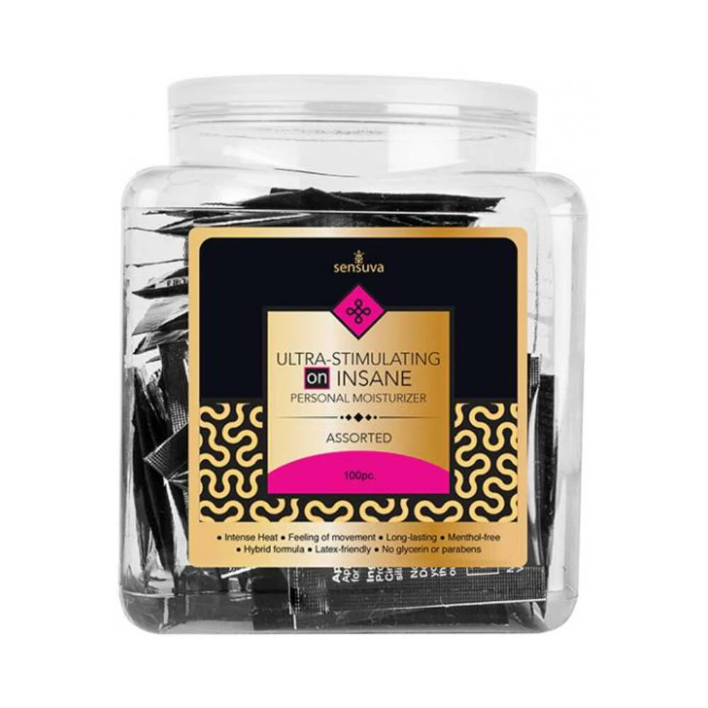ON INSANE is the most intense stimulating personal moisturizer on the market. When it inserted vaginally, there is a relentless heat and then the sexiest feeling of circular movement inside the body. Women can feel it internally as well as externally when it comes in contact with the clitoris. Caramel Apple, Cherry Pop, Cinnabun, or Hot Butter Rum! Tub of 100 Assorted Foils.