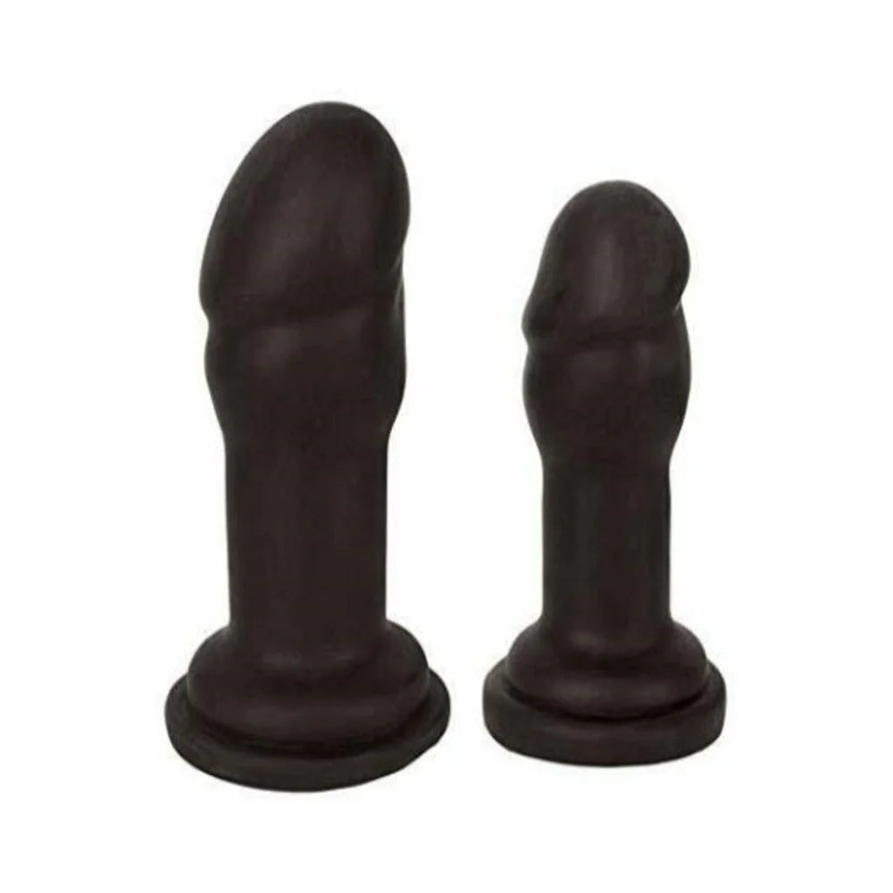 Set of two anal plugs made of enhanced PVC are both firm and pliable. Strong suction cup grips any flat surface. Solid and smooth with flared base for safety. Low maintenance and easy to clean.