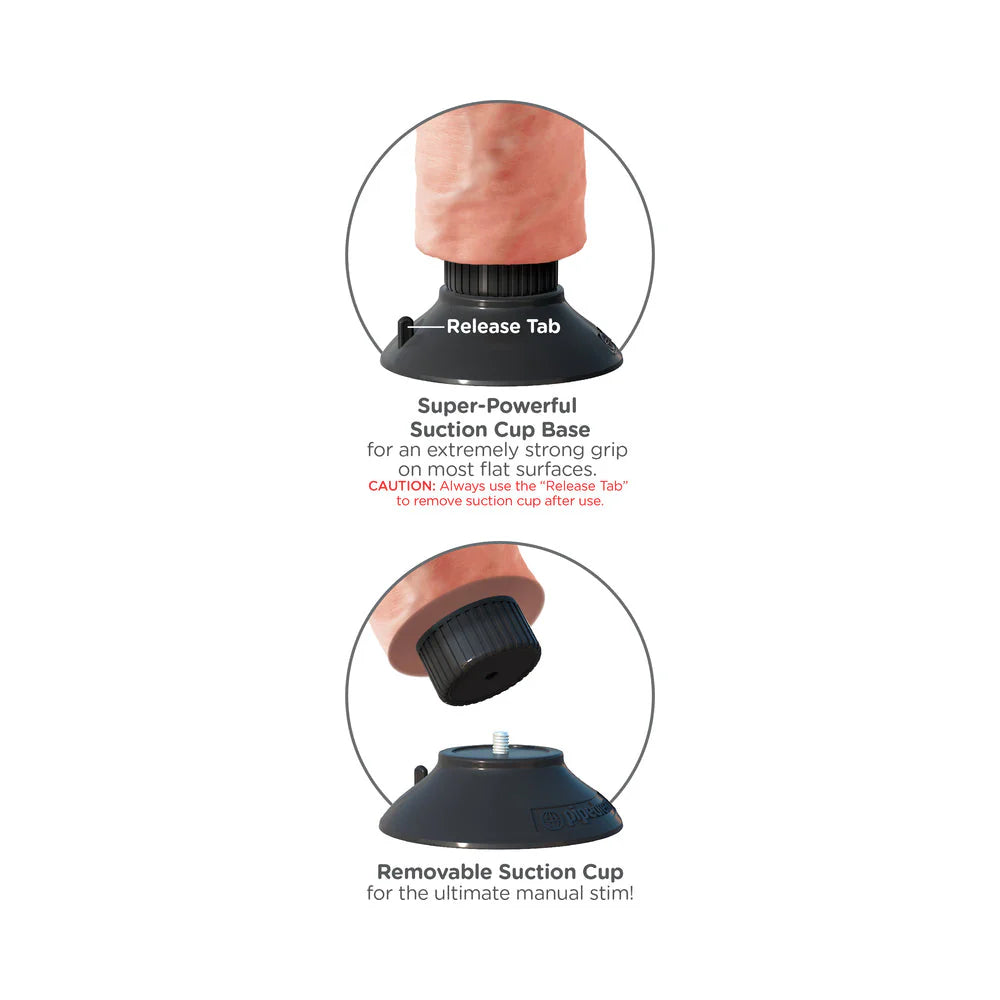 Realistic vibrating dildo with balls, made of PVC Fanta Flesh, features a posable shaft that allows you to bend it to fit a body's contours. Motor in the tip delivers multi-speed vibrations where they are wanted most. Removable suction cup base sticks to almost any flat surface and makes it harness compatible. Waterproof. Requires 3 AAA batteries, not included. 10 in. long.
