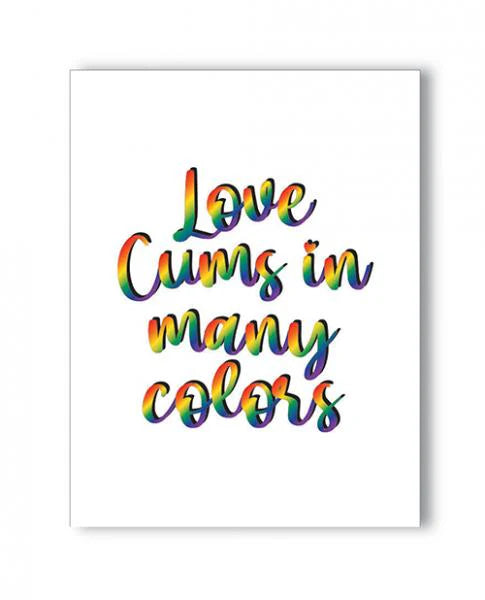Love Cums Pride Card. Love Cums in Many Colors. So many colors to only cum in one <3 Size: A2 4.25" x 5.5" Card - Envelope - Plastic Packaging