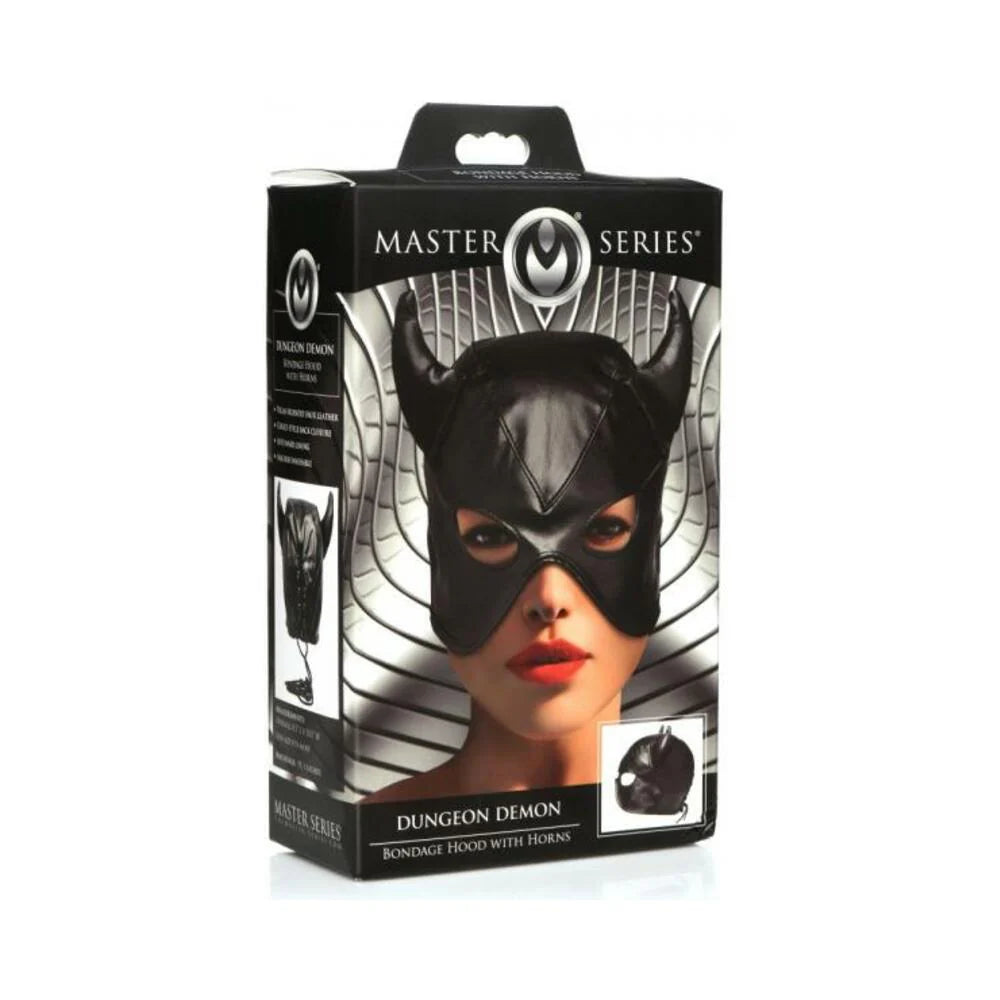 Indulge in your devious dungeon demon side with this bondage hood with horns! Made of PU leather, it is faux leather and vegan friendly! The hood shows off your eyes and mouth so you can change your appearance but still enjoy seeing, speaking and tasting whatever your desire! The inner lining is soft and makes wearing this hood pleasant for long periods of time. If you break a sweat, you`re in luck! This hood is machine washable, as well! Throw it in the laundry on a cool cycle and hang dry. Whether as a costume for a special event or as part of your kinky persona, this Dungeon Demon Bondage Hood is perfect for giving off an aura of mischief and power! Accent your eyes and call attention to your wicked grin as you wear this horned hood. Combine it with leathers, bondage straps, harnesses or other outfits to really bring it all together and give your partner a little mystery and roleplay! Measurements: Overall: 8.5 inches long x 10.5 inches wide. Materials: PU leather Color: Black Note: One size fits most Key Features:Faux Leather Dungeon Demon: This PU leather hood is faux leather and vegan friendly. Dress up as your favorite, devious dungeon demon with a mask that shows your eyes, mouth and has curved horns on the top!Corset Closure: Adjust for comfortable fit with the corset-style closure in the back. Simply lace it up and give it a tug!Soft Inner Lining: Your face deserves soft caresses, so the soft inner lining of this hood is perfect for those who aren`t into everything needing to be rough!Machine Washable: Make your life easy and get gear that can be easily washed! This hood had be put in the washing machine after use on a cool cycle and hung dry!