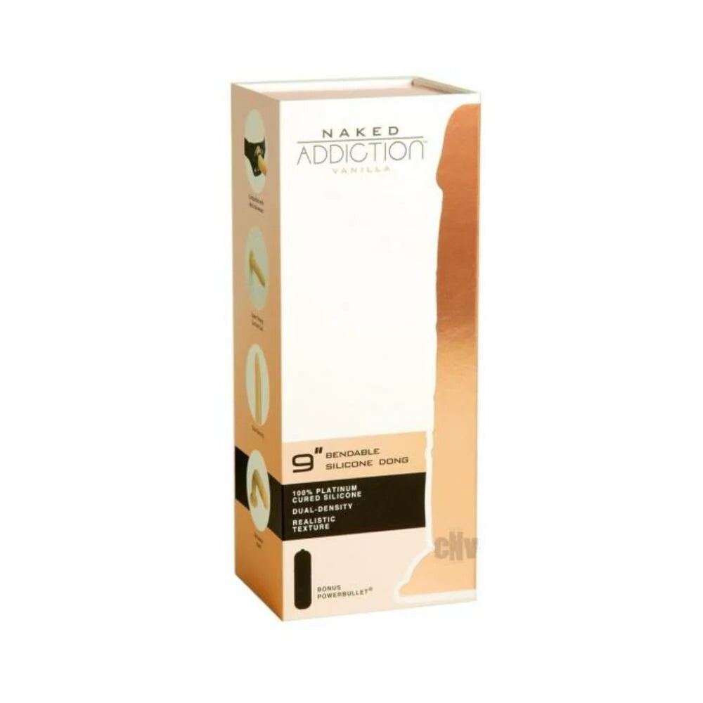When you`re in the mood for unlimited playtime, look no further than the Naked Addiction 9 dildo. Don`t underestimate this non-vibrating dong. The soft yet firm, realistic texture will have you calling out your own name with mind blowing orgasms. The bendable shaft is a feature that will have your toes curling when it hits the spot`. The strong suction base will stick to almost any flat surface and with its wide base, makes this compatible with most harnesses. Allowing you hands-free use to explore your wildest, sexiest fantasies by yourself or invite your partner along on a fierce ride of pegging or penetration. This dildo is made with 100% platinum cured IncrediFeel Silicone. This means it has a high tear strength, is non-yellowing and has no peroxide by-products. It is completely safe to use against your most sensitive areas. This premium IncrediFeel silicone is smooth, soft yet firm, highly realistic texture and bendable, a feature that you`ll love. Always use a water-based lubricant for safe play and always wash your toy with a trusted toy cleaner before and after every use. Stick it to stay, bend it any way, now you`re ready to play! Key Features: 9 Inch Dildo 100% Platinum Cured IncrediFeel Silicone Body-Safe Dual-Density Bendable Shaft. Realistic Texture. Harness Compatible. Strong Suction Base. Soft Yet Firm. Easy to Clean. Storage Pouch Included. Bonus 1 Speed Bullet (LR44 Batteries Included). Phthalate and Latex Free. Dimensions: Length: 9 inch (22.8cm) Insertable Length: 8 inch (20.5cm) Insertable Diameter: 1.7 inch (4.3cm)