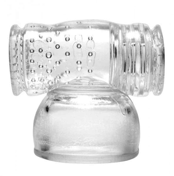 Uniquely designed for amazing stroking adventures. Made from extra soft material, this male masturbation attachment will provide powerful vibrating pleasure with the addition of any standard size wand massager. Its unique design has small pleasure buds within a tight yet stretchy tube. The tube narrows on one side, and is lined with thick, satisfying ribbing, for extra sensation around your cock head, or the base of your shaft, depending on which way you use it. Enhance the pleasure and functionality of your favorite wand with the North Star Male Stroker Wand Attachment. Measurements approximately 3.25 inches by 1.25 inches. Material Thermoplastic Rubber TPR. Color Clear. Note fits any standard size wand, including Hitachi. Wand sold separately.