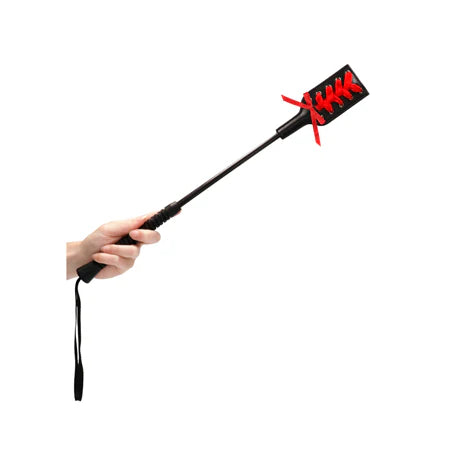 Ouch! Crop Black Rectangle With Red Lace - Large. This short handled rectangular shaped crop with black lace is the perfect way to discipline your partner.