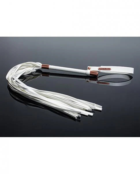 Pleasure Collection Matte Finish Whip. From Coquette. Matte Finish diamond printed handle 7 inch handle. Soft 5 inch vegan leather tails. Metal COQUETTE charm. Overall Length - 26.5inches. Wrist strap circumference - 11 inches. Vegan Leather/Metal.
