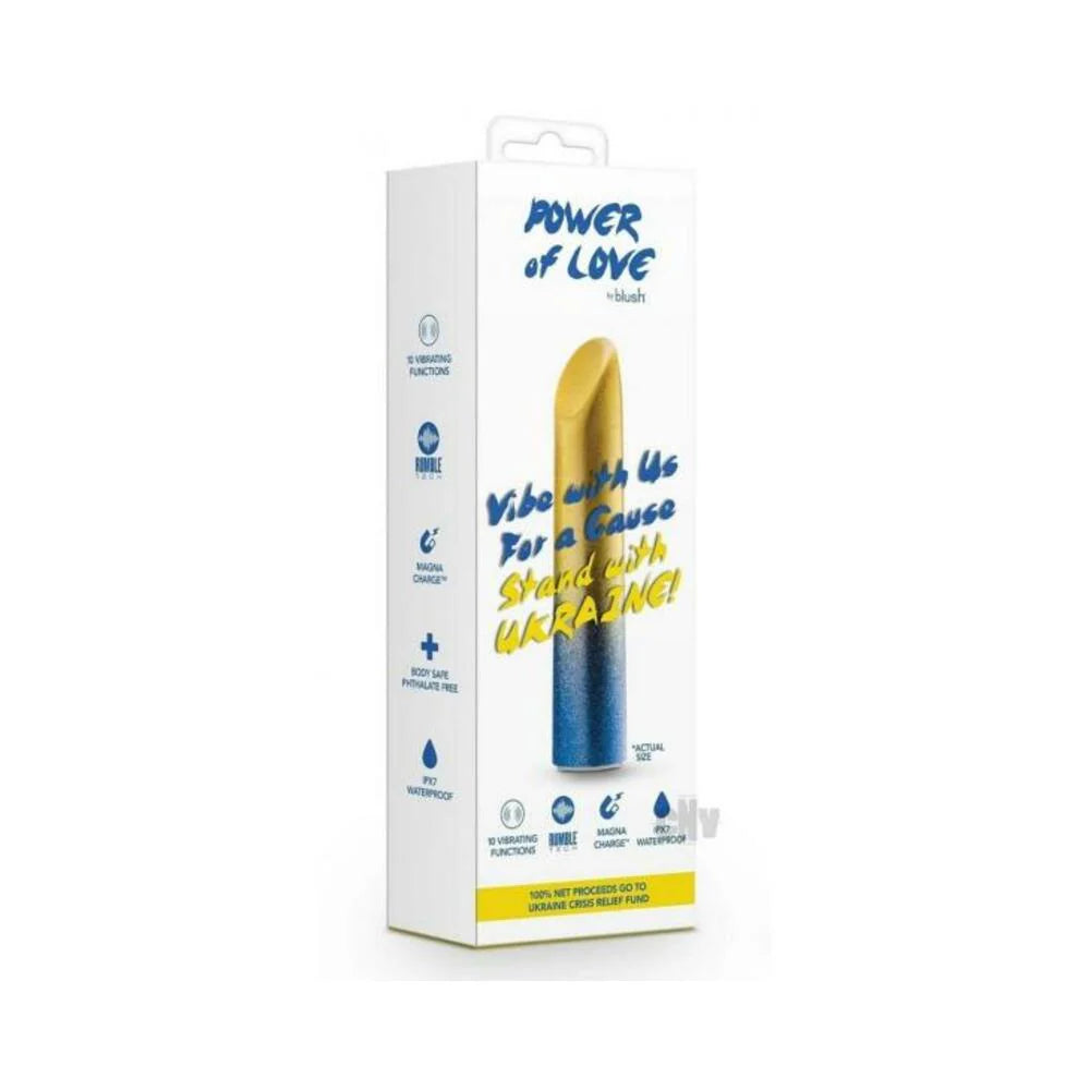 Vibe With Us - For a Cause! All net proceeds will be donated to support relief efforts in Ukraine. This Power Vibe is a colorful and sleek vibrator that delivers 10 deep, rumbly vibrations with the superior Rumble Tech motor! Cycle through 5 powerful speeds and 5 unique and thoughtfully curated patterns using the two button design to find your perfect pleasure preference. IPX7 submersible waterproof for bath and shower play and has Magna Charge USB magnetic recharging, this vibe is easy to clean and even easier to use. It has a smooth, sensual satin feel and it contains no phthalates, paraffins, latex, or fragrance.