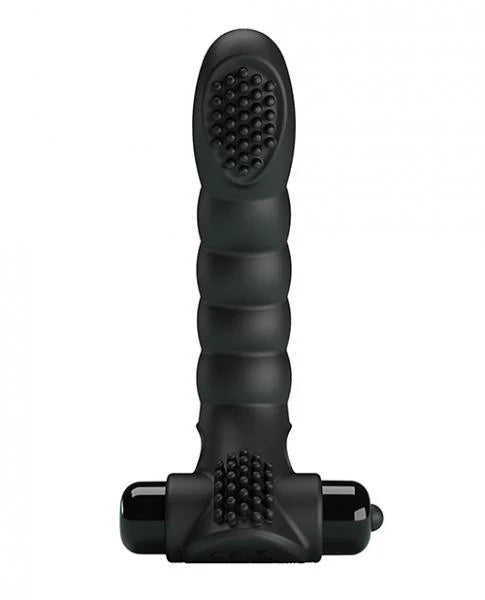 Twin your intimate knowledge of your lover's body with the stirring sensations of a finger vibrator, to spark passionate arousal in a few deft strokes. A slim finger vibrator designed for nimble stimulation, secret touching elicits potent desire in play. 10 functions. Vibrator requires 1 AAA battery.