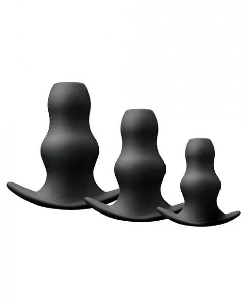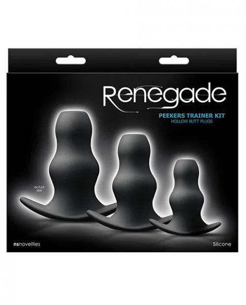 Look who is gaping now! An exhilarating addition to anal play, Peekers are ideal for the adventurous seeker! Kit includes three rippled plugs in graduating sizes, each with hollowed center for peephole thrills and playful probing! Made of firm, silky smooth silicone with flared base for secure wearability. Suitable with all lubricants. Product dimensions small butt plug 2.95 inches by 2.87 inches by 1.38 inches. Medium butt plug 3.86 inches by 3.78 inches by 1.77 inches. Large butt plug 4.41 inches by 4.29 inches by 2.01 inches. Package dimensions 8.07 inches by 9.29 inches by 2.24 inches.