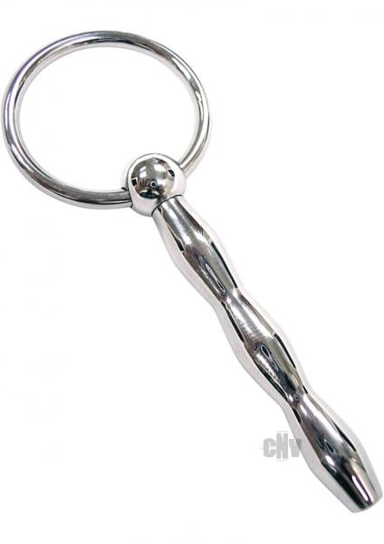 Stainless steel urethral probe has a smooth ribbed shaft for intense stimulation. Hole through shaft allows easy ejaculation and urination. Ring pull at the top for easy removal. Measures 2.4 in. by 0.31 in.