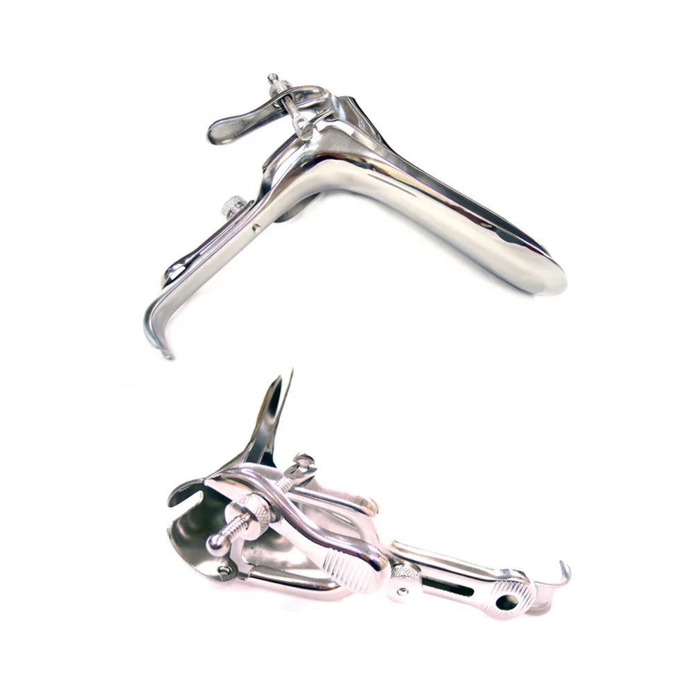 Stainless Steel Graves vaginal speculum with lateral ratchet. Detachable lower part is convertible into a vaginal retractor.