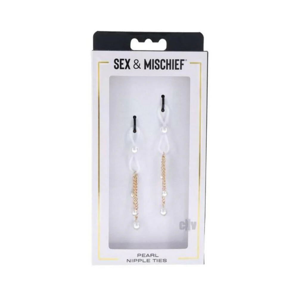 Indulge in the refined allure of our Pearl Nipple Ties - a captivating accessory that adds a touch of sophistication to any naughty occasion. With the pearls suspended by clear ties, they appear to effortlessly float on the body, creating a mesmerizing and ethereal effect. Let the Pearl Nipple Ties adorn your body like precious jewels and easily adjust the ties to add pressure and a touch of luxury and allure to your most cherished moments. Lightweight and great for beginners 1 ¼ adjustable tie to customize pressure 3 dangling faux pearls to mesmerize your partner.