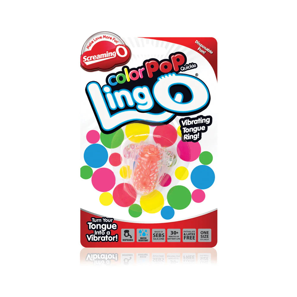The LingO turns your tongue into a vibrator and adds a tingly twist to oral sex! This safe and comfortable mini vibe features a super-bright and super-powered motor that stimulates with ease. Now available as a convenient ColorPoP Quickie, couples can enjoy vibrant vibration at home or on the go with a disposable design they can take anywhere!Features:• Micro motor turns your tongue into a vibrator for enhanced oral sex• Unique ergonomic shape fits the tongue comfortably• Easy on/off switch• Disposable• 30+ minutes battery life• One size fits most• SEBS silicone• Latex- and phthalate-free• Wireless• Water Resistant