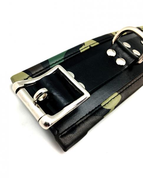 Sensual Sin Leather Padded Wrist Cuffs Camo Piping