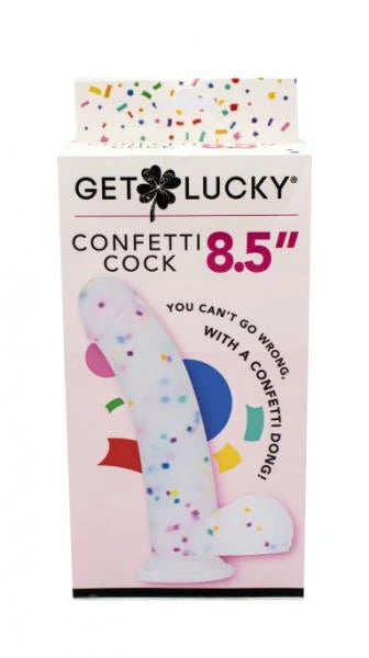 Shibari Get Lucky Confetti Cock 8.5 inches from Thank Me Now. You can't go wrong with a confetti dong. Made with body safe Silicone materials. Soft touch. Easy to clean. Dong features a suction cup base for solo play. Suction cup will stick to any clean surface. Or partner play with a strap on harness. Please use stretchy o-rings. Metal ones may damage dildo. Also if personal lubricants are used, please do not use Silicone based ones. Water based personal lubes are the lubes of choice. Always clean before and after use. Pat dry before storage. Shibari - Get Lucky. 2022.
