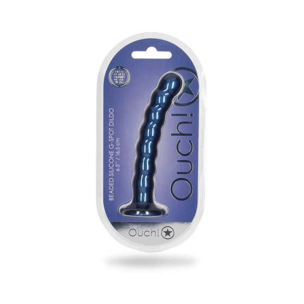 Shots Ouch! Beaded Silicone 6.5 In. G-spot Dildo Metallic Blue
