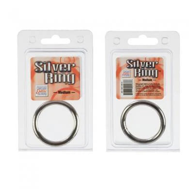 Middle Silver - Medium - Medium solid metal cock ring with 1.5 inch opening.