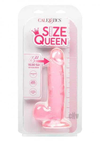 Size Queen 6 inches Pink Realistic Dildo from California Exotic Novelties. For the Size Queen inside all of us, we are pleased to introduce one of our most delectable products the 6 inches Size Queen. With a firm, life like feel, you will not be able to distinguish this from the real thing, and that is exactly what we are aiming for. With a realistic head and veins a 6 inches long shaft, and an overall length of 8 inches, our 6 inches Size Queen delivers more than the name implies. Take it all in, from the flexible shaft to all of the life like features. The sturdy suction cup base will allow you endless hours of enjoyment while mounted to any non-porous surface. To make things even better? The 6 inches Size Queen is fits most harnesses. The flex and bends mimics that of its natural human counterpart: Exactly what your body was built for. Embrace the Size Queen in yourself and hop on board. It is going to be a fun ride. Features Phthalate free, unscented Thermoplastic Rubber TPR. 1 year warranty.