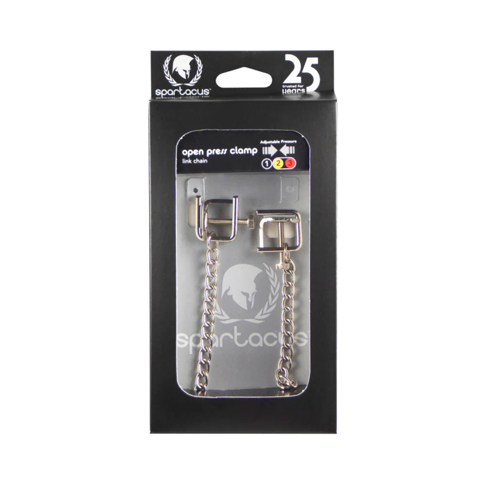 Spartacus Adjustable Nipple Clamps With Curbed ChainApply the perfect amount of pressure with these adjustable nipple clamps. The stimulating effect will make your nipples the center of attention, as they should be.
