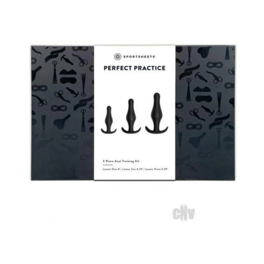 Practice really does make perfect with the Perfect Practice anal training kit. Start with Lesson One, a tapered 4" plug with convenient handles for easy insertion and removal. Designed with soft and flexible silicone, these plugs are sure to heat things up during sexy solo sessions or partnered play. Once you’ve mastered the first plug, graduate to Lesson Two, a 4.75" plug, and then Lesson Three, a 5.75" plug for even more penetration pleasure. Before you know it, you’ll graduate from fantasy to fetish. Features: Lesson One (Small) Lesson Two (Medium) Lesson Three (Large) In The Box: Small Butt Plug, Insertable Length: 4" (10.2 cm) Girth: 3.5" (8.9 cm) Medium Butt Plug, Insertable Length: 4.75" (12.1 cm) Girth: 5.5" (13.9 cm) Large Butt Plug, Insertable Length: 5.75" (14.6 cm) Girth: 5.25" (13.3 cm) Materials: 100% silicone