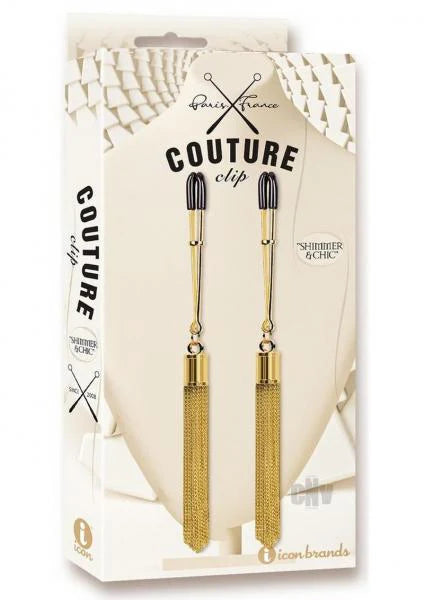 Simply the world's most beautiful nipple clips, licensed to Icon Brands by Paris renowned designers, Atelier Elysee. Shown in actual size on their elegant packaging, they feature exquisite pairings of delicate feathers, ornate beading and rich metallics in combinations as stunning as a Parisian sunset. In Shimmer Chic the designers have fashioned thoroughly elegant golden mesh in shimmering strands, held in place by a chunky golden clasp. Moves as you do... Elegant, long golden mesh Beautiful golden clasp accents mesh Fully adjustable; one size fits most Mesh shimmers and shines as it sways!