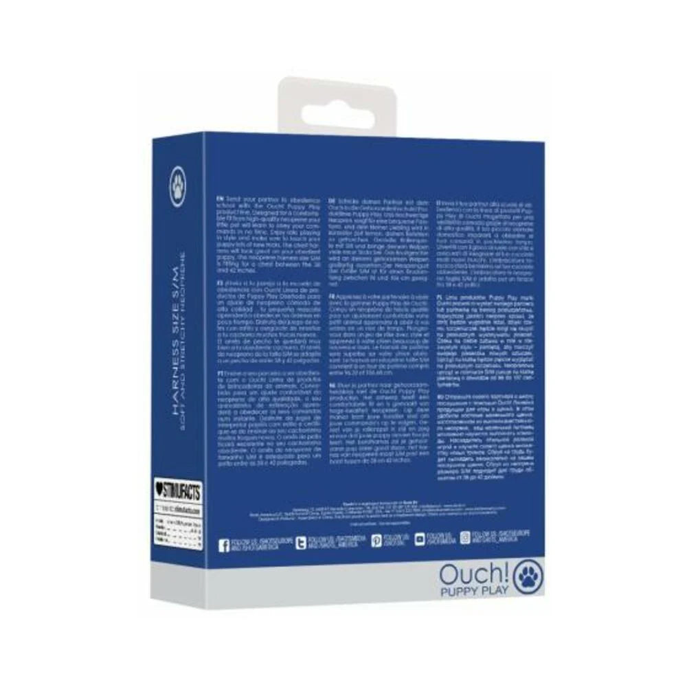 Send your partner to obedience school with the Ouch! Puppy Play product line. Designed for a comfortable fit from high-quality neopreneandnbsp;your little pet will learn to obey your commands in no time. Enjoy role playing in style and make sure to teach your puppy lots of new tricks. The chest harness will look great on your obedient puppy.andnbsp;The neoprene harness size S/M is fitting for a chest between the 38 and 42 inches.