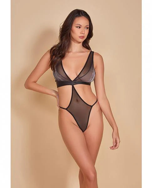 She's A Babe Mixed Media Teddy W/open Sides Black O/s